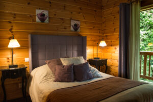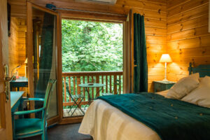 La chambre pmr situé au rez-de-chaussée d’une surface de 18m^2. Equipée d’une salle de bain avec douche à l’italienne et WC, ainsi qu’un accès direct à la terrasse.